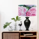 The image on this lampshade is a section taken from my original acrylic painting ‘Printempts Colore’. The loose floral style and bright colours make this a very happy and bold statement lampshade, that is unusually adorned with with original art. A beautiful floral of pink and red roses display that will add elements of spring and summer to your home year round.