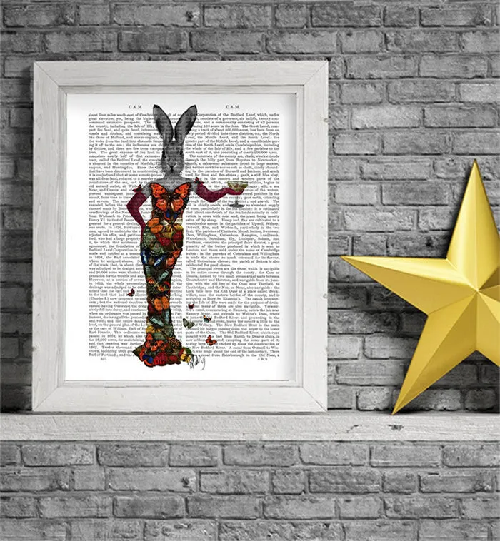 Rabbit Butterfly Dress, Book Print, Art Print, Wall Art