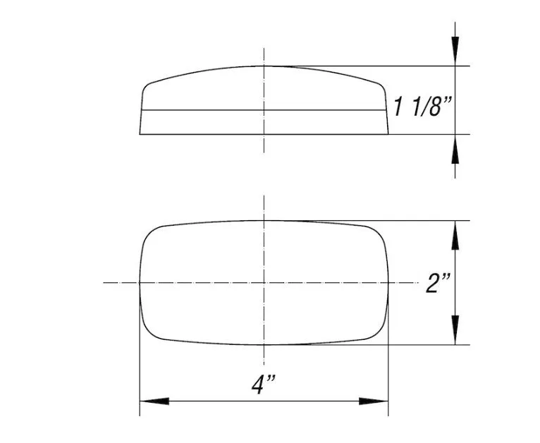 Clearance Light; MC32 SERIES; Incandescent; Oblong; 4 Inch Length x 2 Inch Width x 1-1/8 Inch Depth; Red Lens; White ABS Housing; With Reflex Lens; 12 Volt DC; Surface Mount; Polypack Packaging