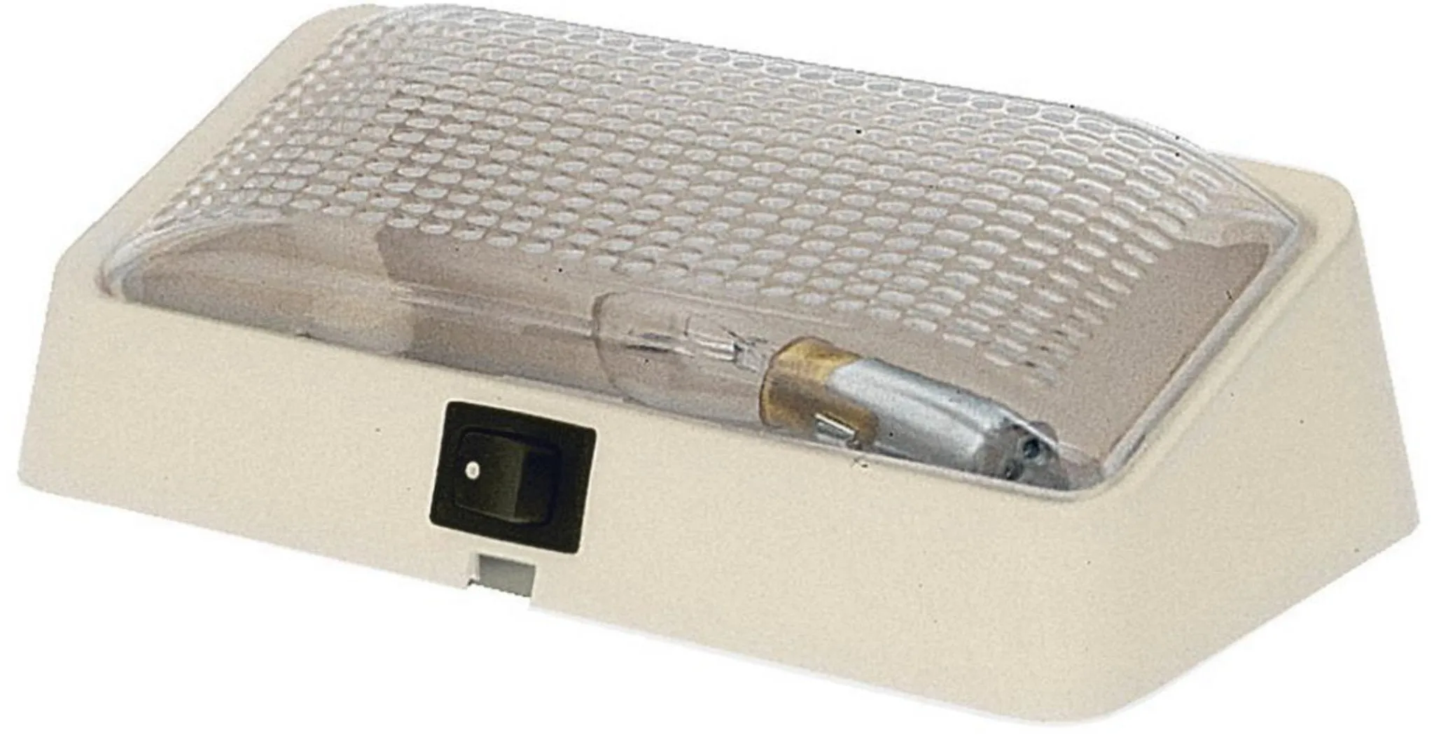 Porch Light; 1 Incandescent Bulb; 6-3/8 Inch x 3-1/2 Inch Rectangular Housing; Clear Lens/ Colonial White Base; With Switch; Snap-In Lens