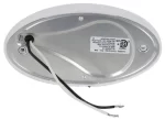 6-1/4″ x 3-7/16″ Oval. Incandescent light provides bright light for illuminating the area outside your RV. Built-in switch. Durable plastic housing with snap-on lens. Surface mount – hardware not included. 2-Wire design. (1) 1141 bulb.Features:Incandescent light provides bright light for illuminating the area outside your RVBuilt-in toggle switch controls on/off functionIncandescent bulb can be easily replacedDurable white plastic housing resists corrosionSnap-on clear lens covers incandescent bulbCompatible with 12V DC systemsSurface mount installation – hardware not included2-Wire design includes power lead and ground wireUL and CSA certifiedSpecs:Dimensions: 6-1/4″ long x 3-7/16″ wide x 1-7/8″ deepDistance between mounting holes (center on center): 4-7/8″Bulb type: 1141Power draw at 12.8V: 1.4 amps3-Year limited warranty