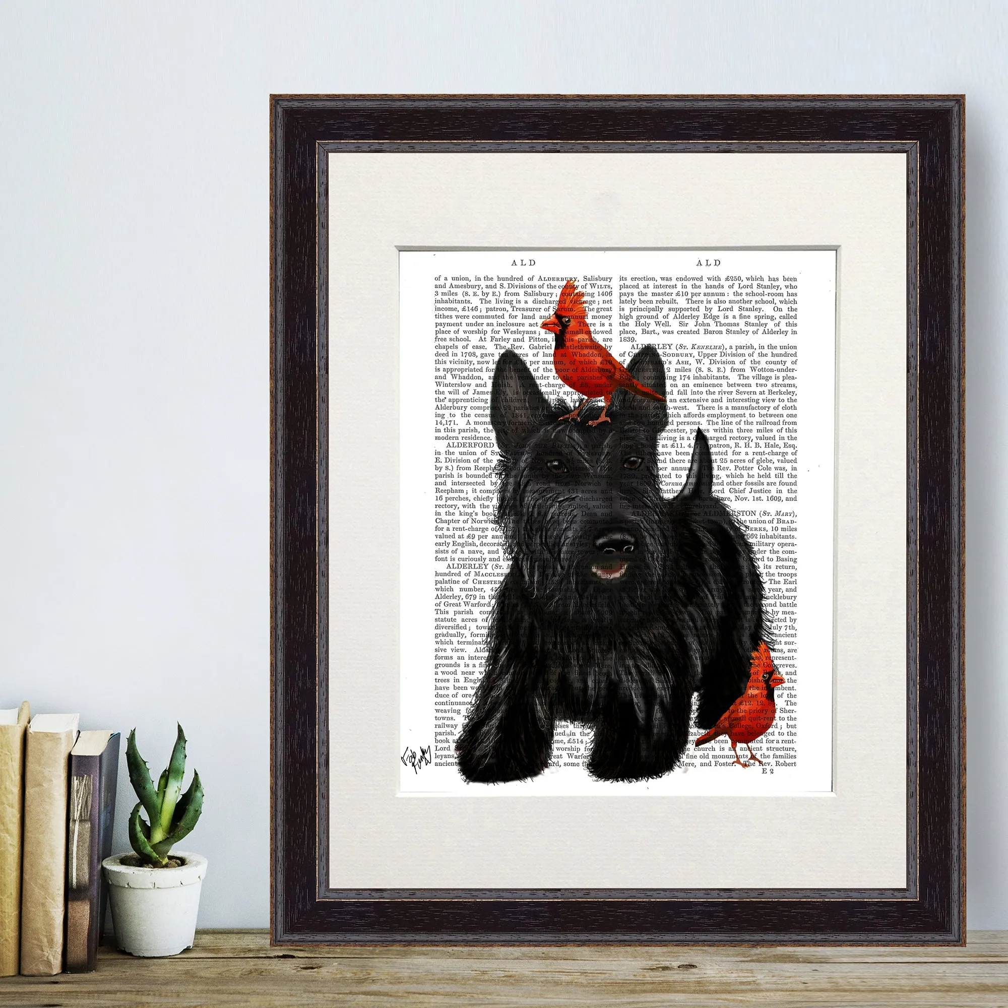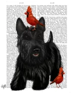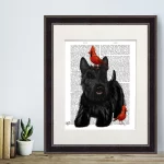 Scottish Terrier and Red Cardinal Birds Dog Book Print, Art Print, Wall Art