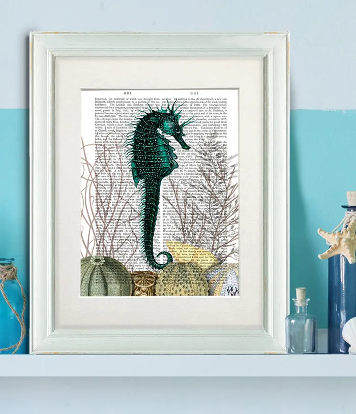 SeaHorse and Sea Urchins, Book Print, Art Print, Wall Art
