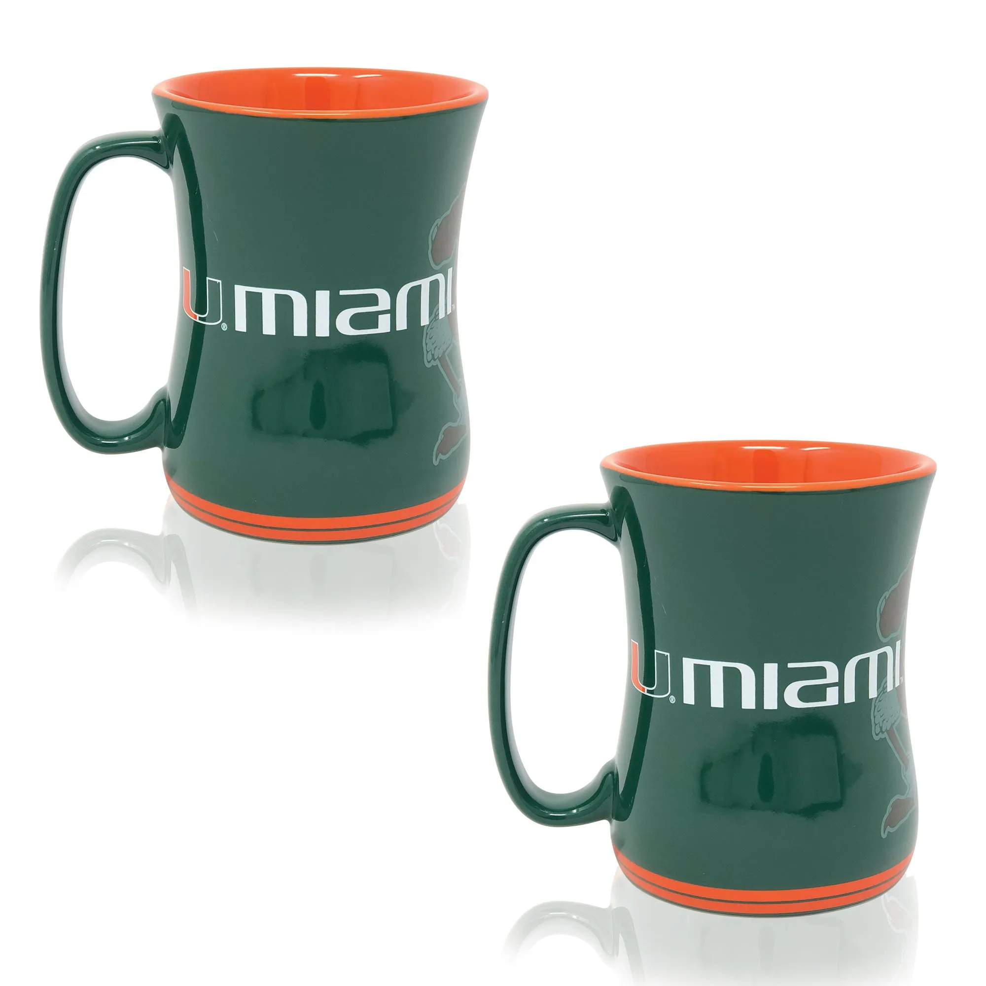 This stunning set of two sculpted 16oz Barista Mugs is the perfect way to express your love and support for your favorite school. Featuring officially licensed raised logos and a triple-glazed finish, these mugs are both long-lasting and durable, designed with a curved rim for easy sipping. They are also microwave – and dishwasher-safe. Celebrate your Hurricanes pride with every sip!