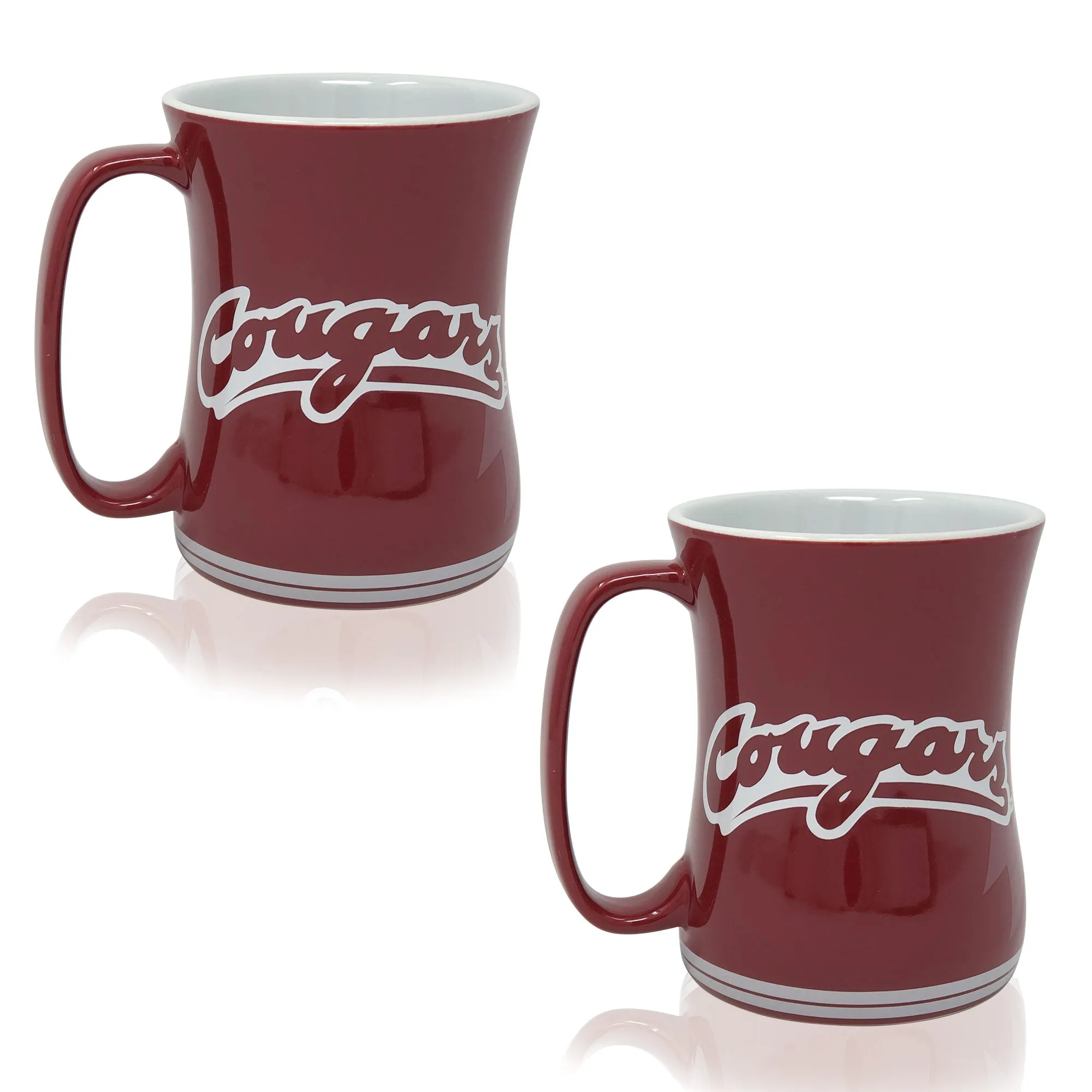 This stunning set of two sculpted 16oz Barista Mugs is the perfect way to express your love and support for your favorite school. Featuring officially licensed raised logos and a triple-glazed finish, these mugs are both long-lasting and durable, designed with a curved rim for easy sipping. They are also microwave – and dishwasher-safe. Celebrate your Cougars pride with every sip!