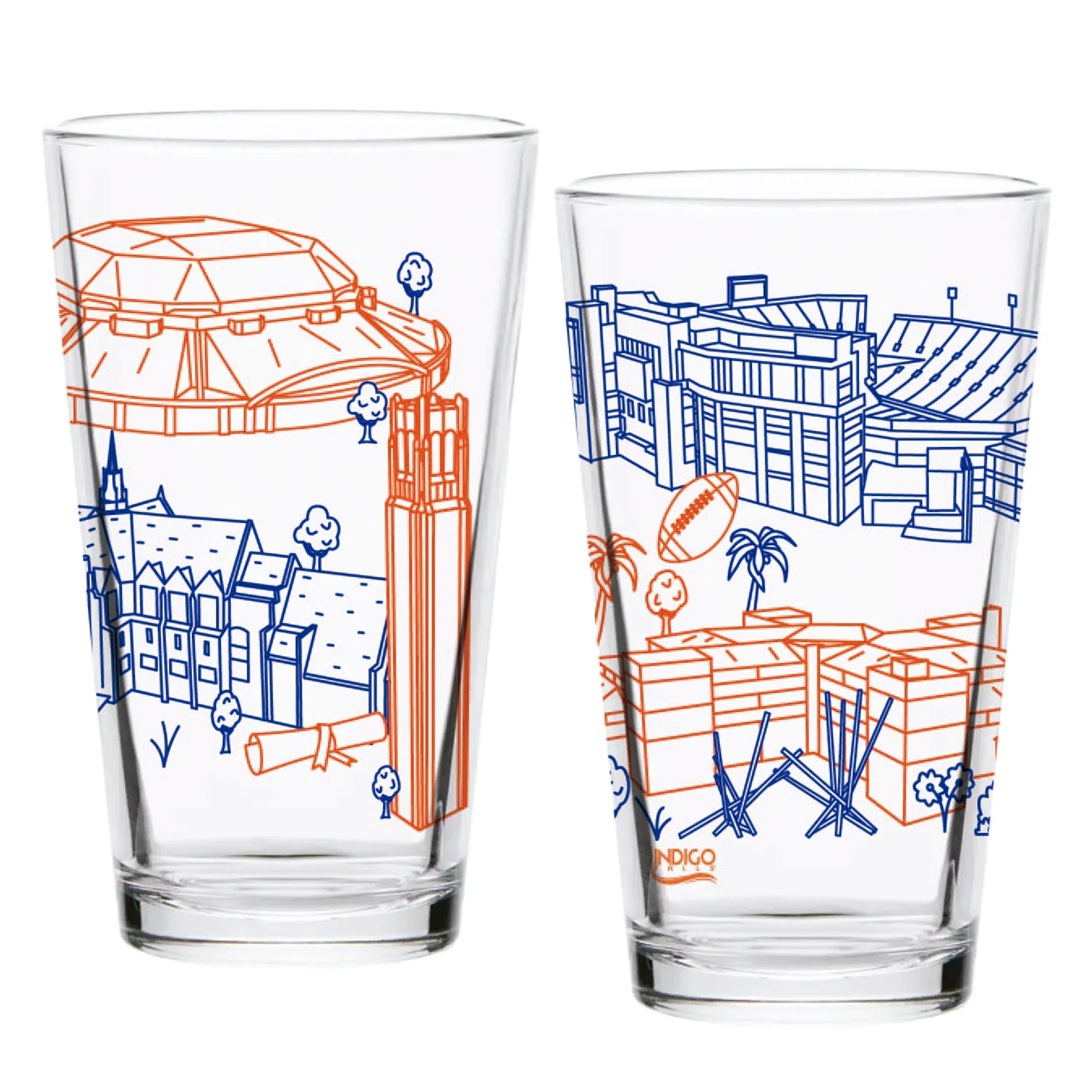 Set of 2 Florida Gators Campus Line Art 16oz Pints