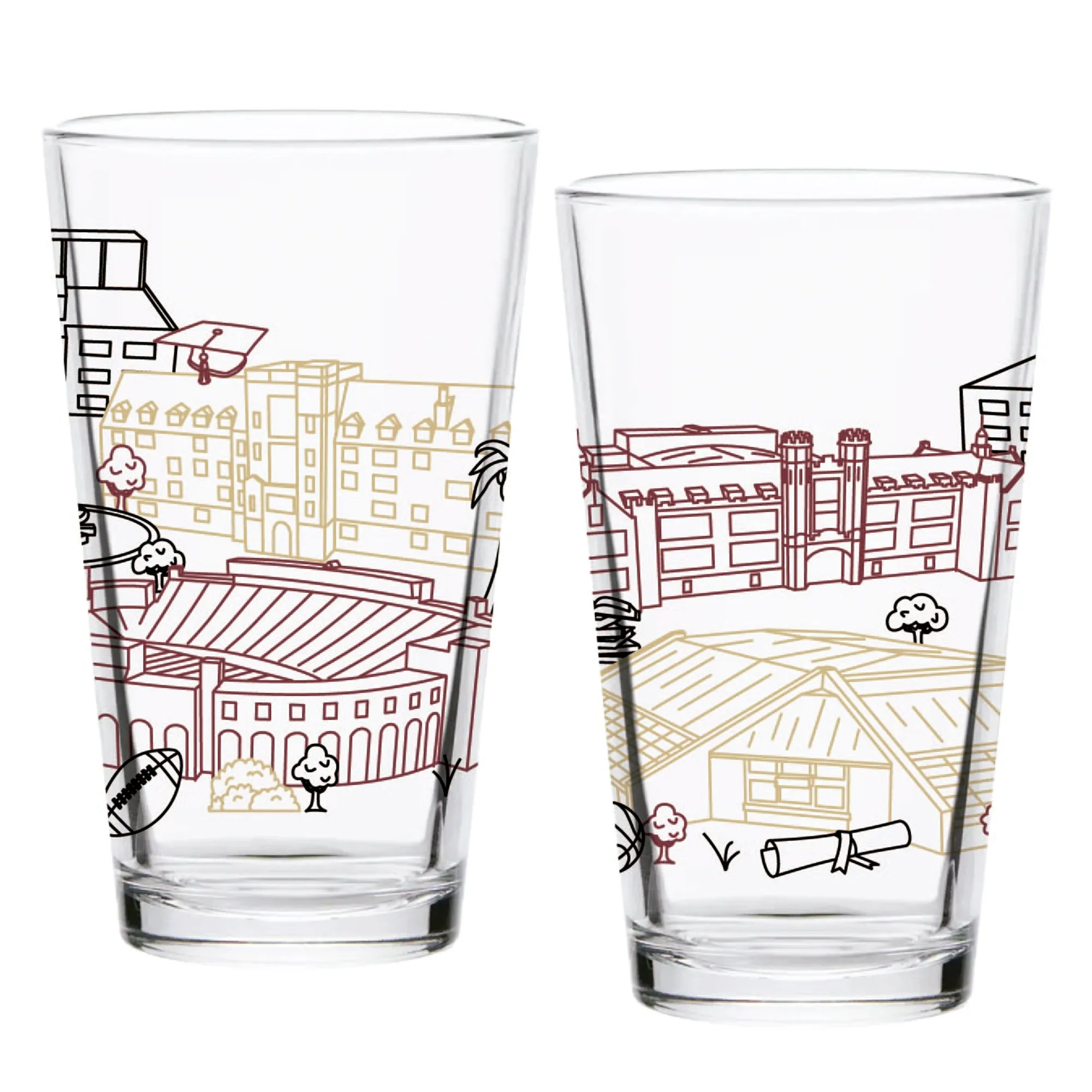 Set of 2 Florida State Seminoles Campus Line Art 16oz Pints
