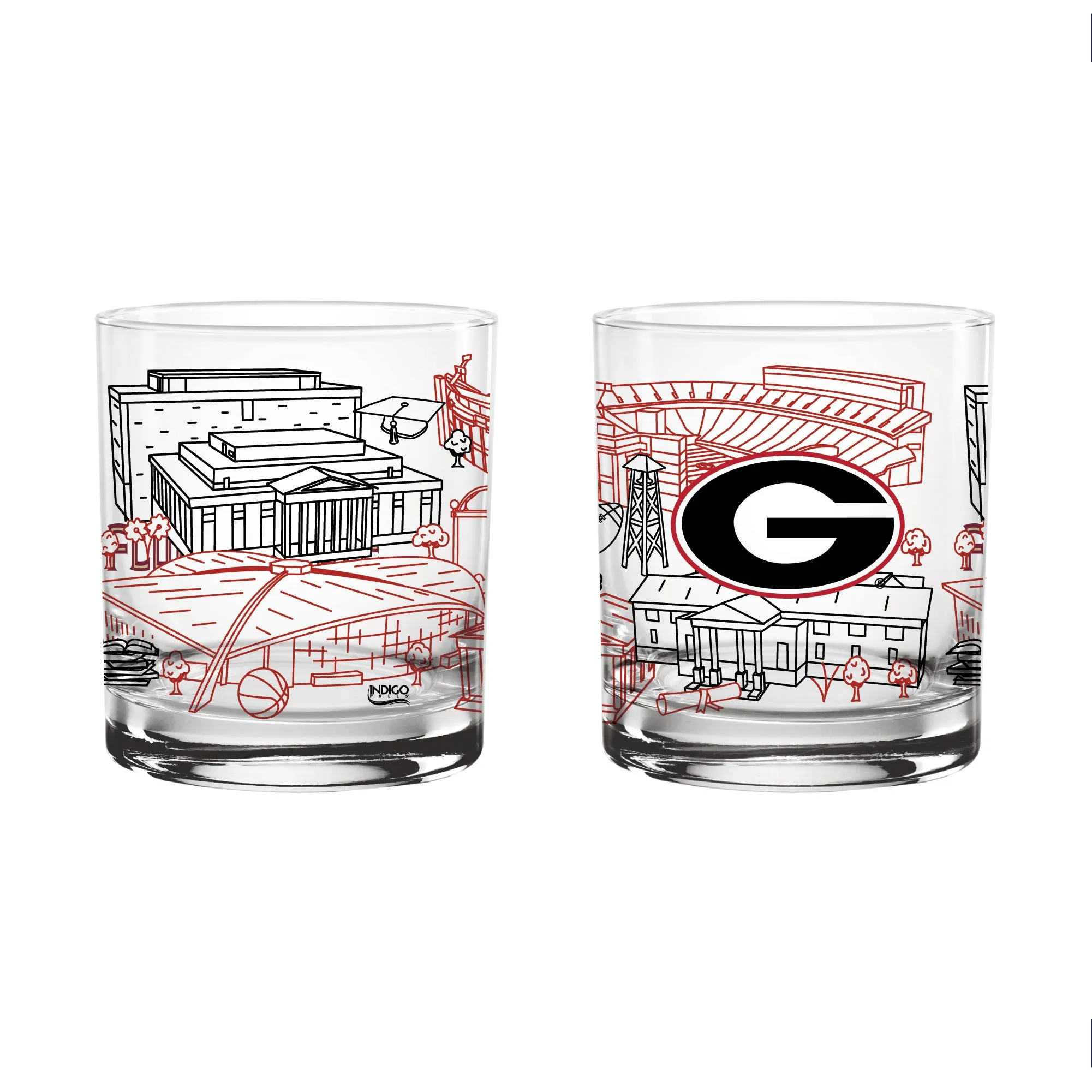 Featuring the beautiful, architectural campus line art from Josh Seubert of Townsville Art, these pint glasses feature iconic buildings on campus. If you love the Georgia Bulldogs, you’ll love these rock glasses! Go Dawgs!