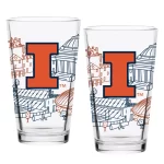 Set of 2 Illinois Fighting Illini Campus Line Art 16oz Pints