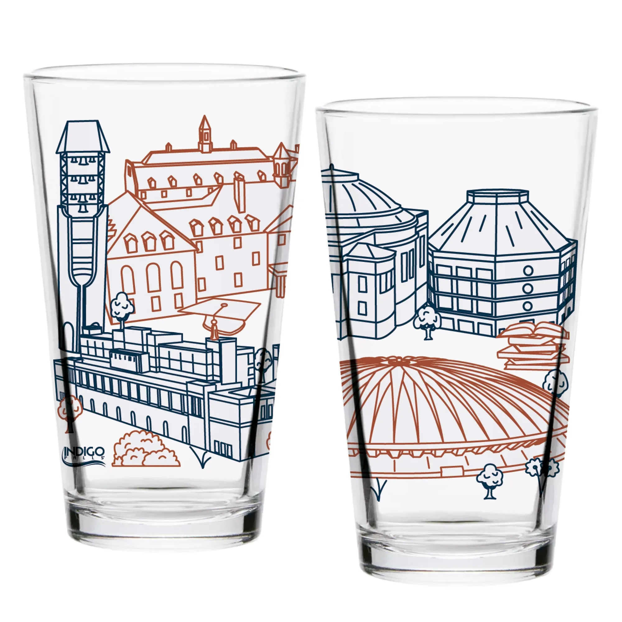 Featuring the beautiful, architectural campus line art from Josh Seubert of Townsville Art, these pint glasses feature iconic buildings on campus. If you love the Illinois Fighting Illini, you’ll love these pint glasses! Handwash recommended