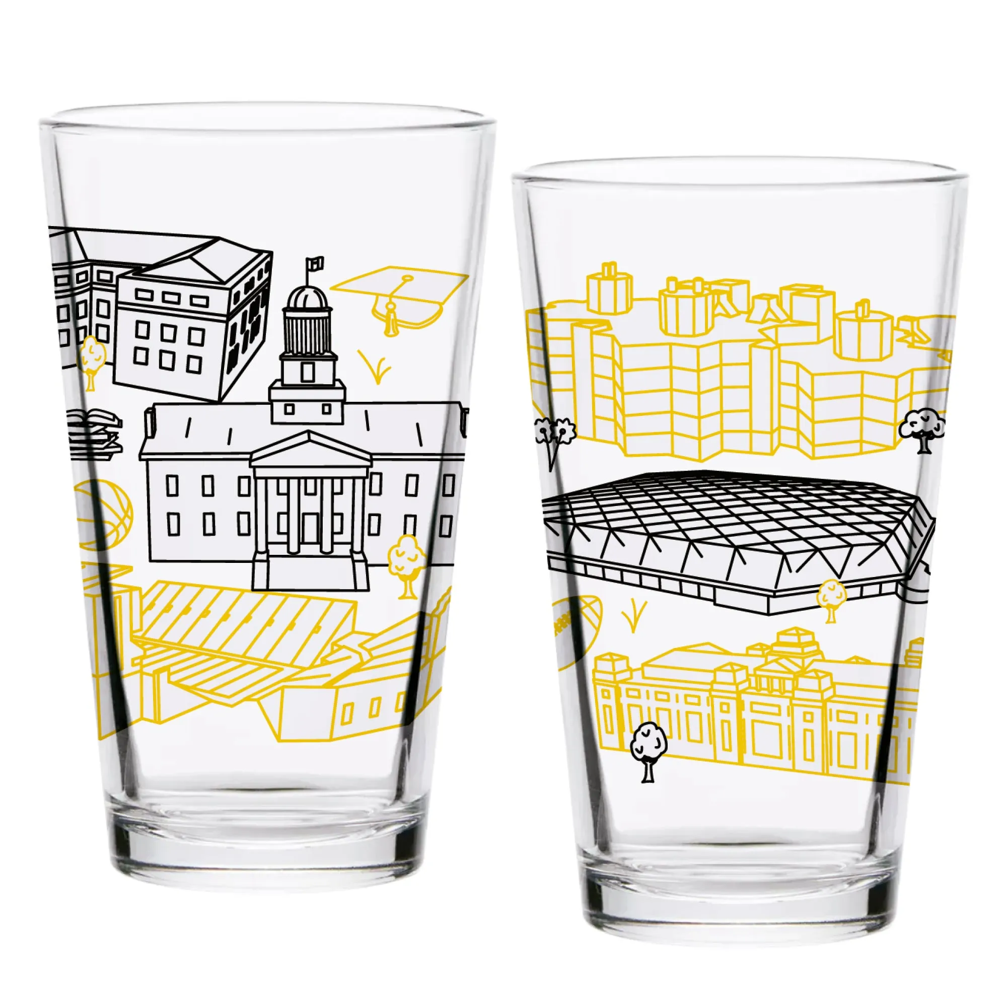 Set of 2 Iowa Hawkeyes Campus Line Art 16oz Pints