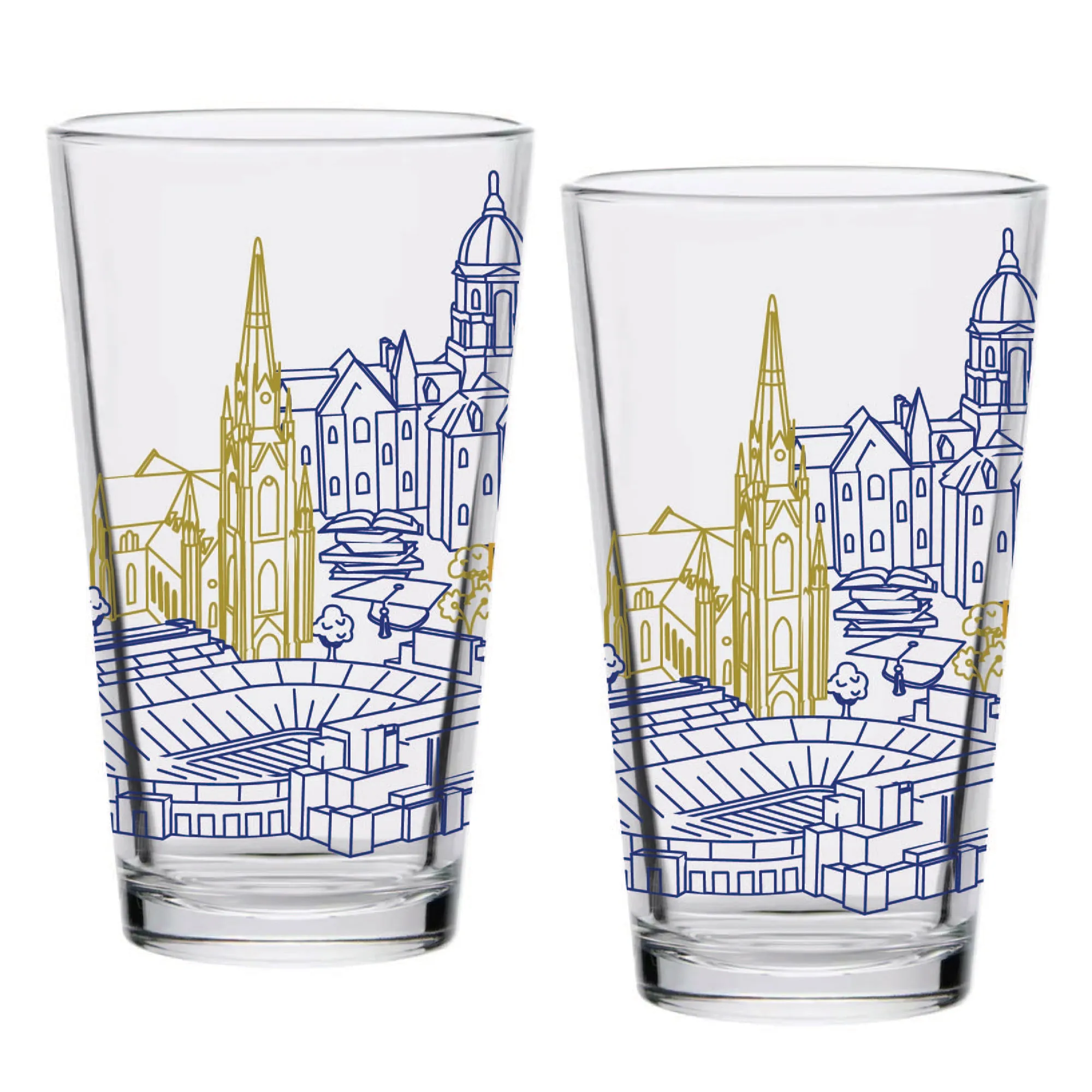Set of 2 Notre Dame Fighting Irish Campus Line Art 16oz Pints
