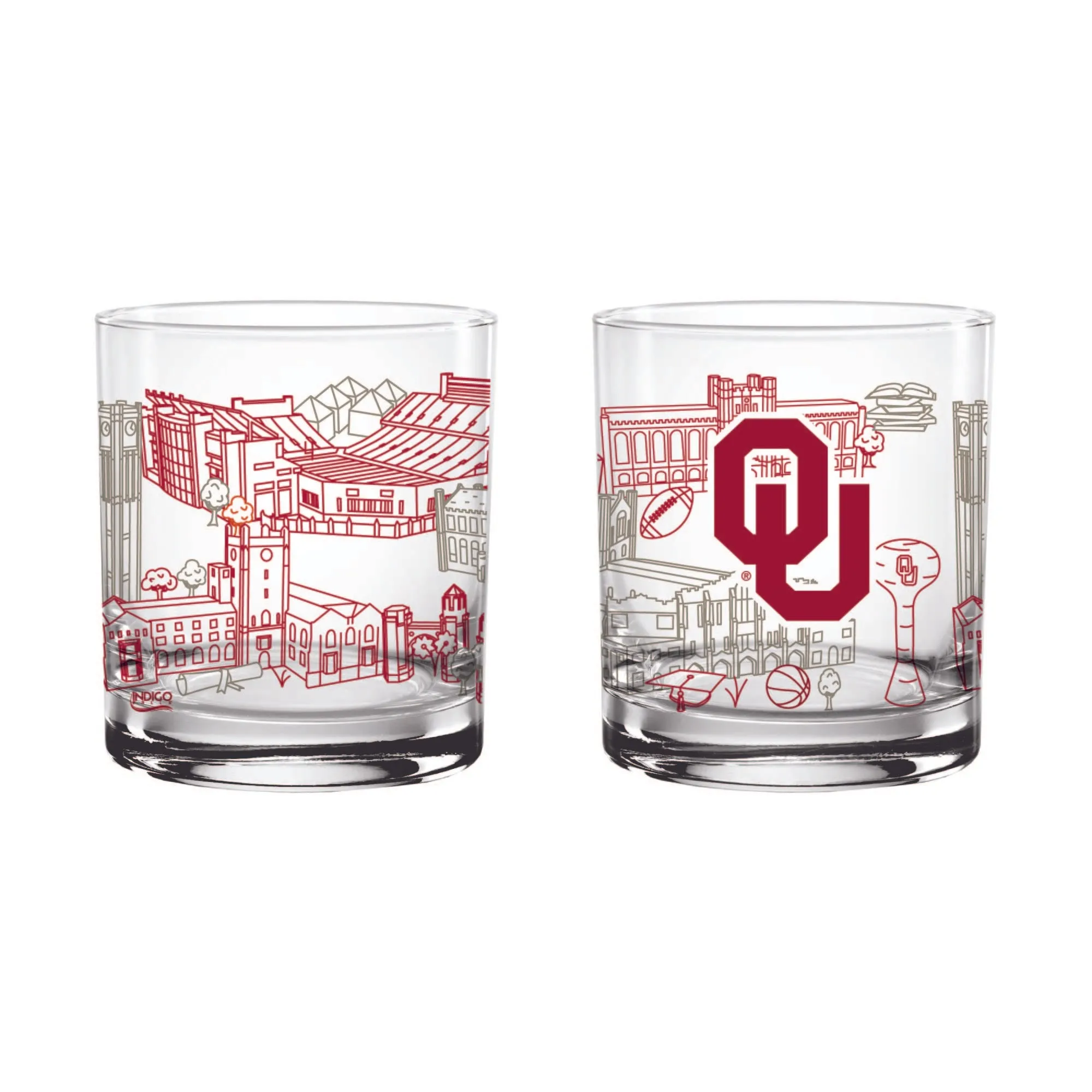 Featuring the beautiful, architectural campus line art from Josh Seubert of Townsville Art, these pint glasses feature iconic buildings on campus. If you love the Oklahoma Sooners, you’ll love these rock glasses! Go Sooners!