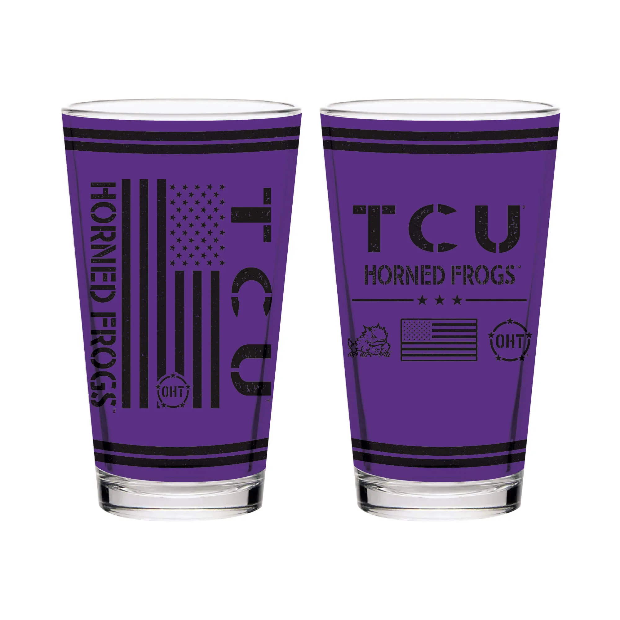 Set of 2 TCU Horned Frogs 16oz OHT Flag Pints