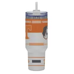 With this incredible tumbler, proudly show off your love for the Tennessee Volunteers. It features a full wrap of graphics from top to bottom, a sizable handle, a lid perfect for sipping or straws, and double wall vacuum insulation to keep your favorite drinks hot or cold for hours on end! Plus, it even comes with a straw included in the box!