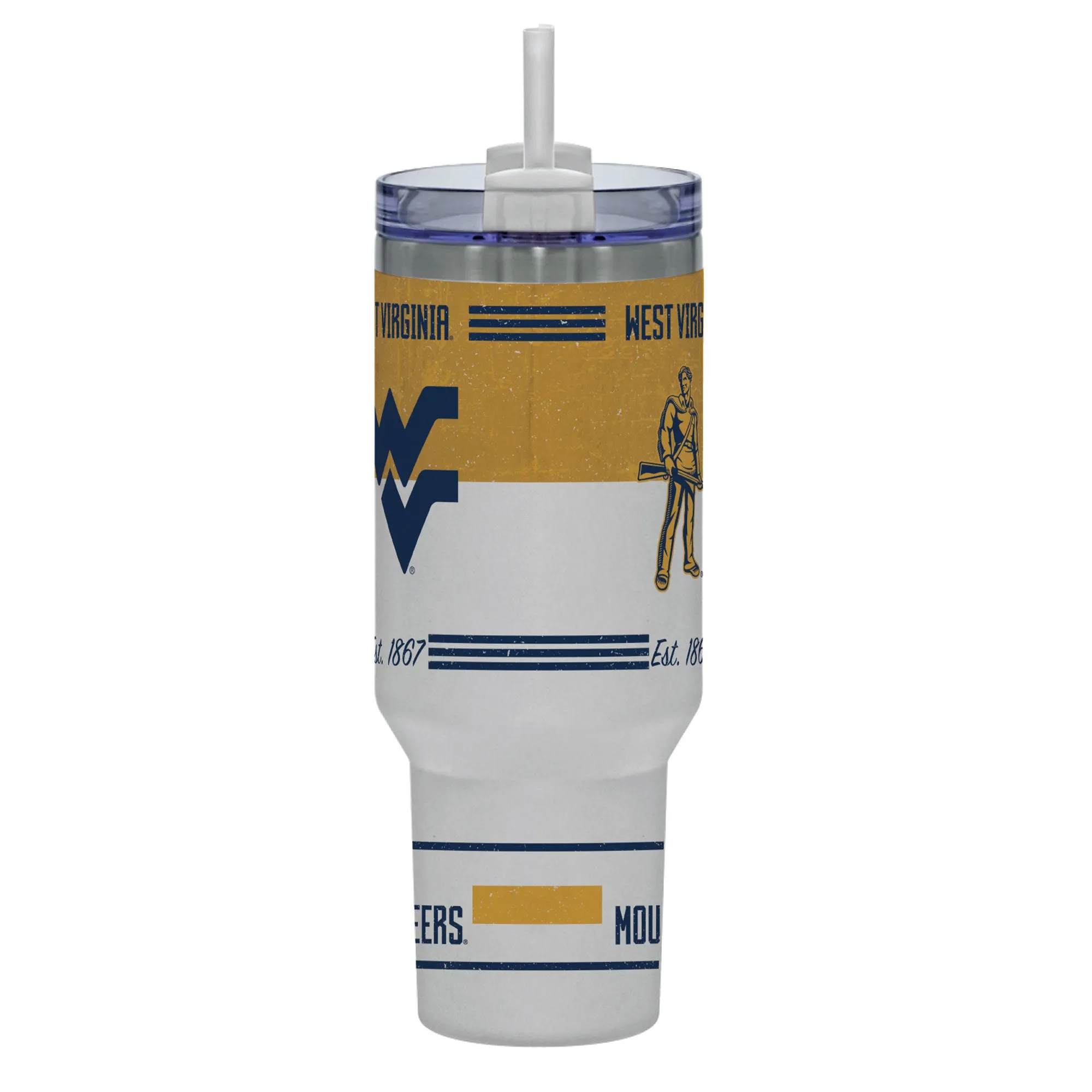 With this incredible tumbler, proudly show off your love for the West Virginia Mountaineers. It features a full wrap of graphics from top to bottom, a sizable handle, a lid perfect for sipping or straws, and double wall vacuum insulation to keep your favorite drinks hot or cold for hours on end! Plus, it even comes with a straw included in the box!